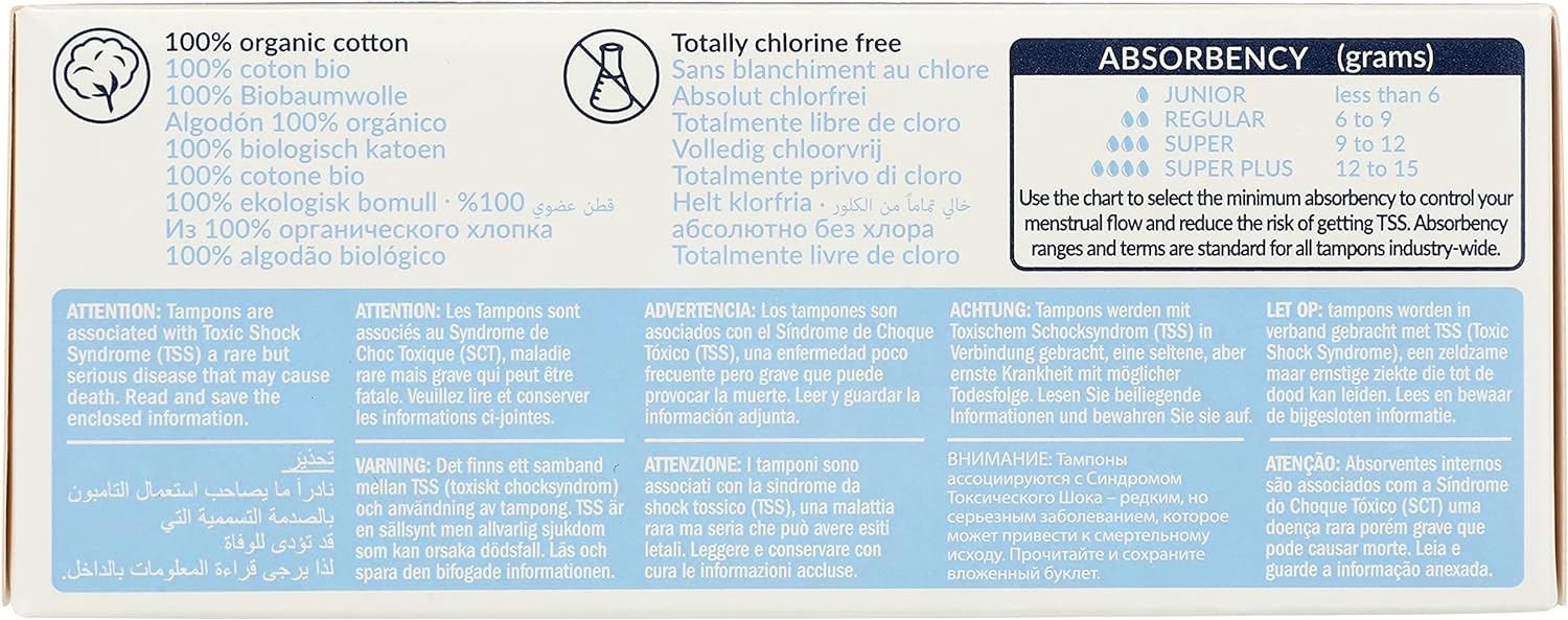 GOTS certificirani tamponi od organskog pamuka sa redovnom upijanjem. Napravljena od umotane vate od organskog pamuka dugih vlakana – dizajnirana da nježno apsorbira menstrualni protok i širi se u širinu.